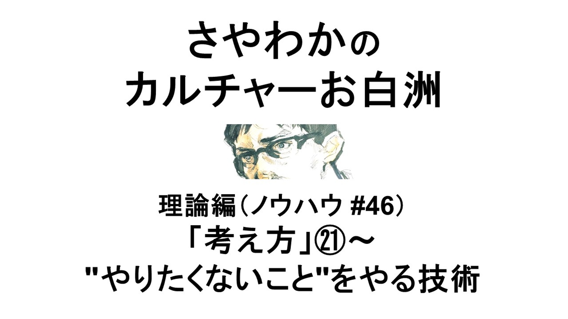 批評家のさやわか氏が運営しているわけなので、ざっくり言えばカルチャーお白洲がいわゆる「カルチャー批評」系のチャンネルであるのは間違いない。しかしそれに留まらない射程の広さを持っていることを、たとえばこの「ノウハウ回」という一連のシリーズの存在が示している。しかも、こういうカルチャーとか思想系の話において「射程の広さ」というのはしばしばその「広さ」自体が自己目的化してしまうようなものなのだが(多分野知ってれば一分野しか知らない奴にマウント取れる的な、そういうさもしい怖い話)、カルチャーお白洲はそれをしない。ここで「批評」は本当に、人間の怠惰な本性をコントロールし、メタ認知をもって人生を運営していくためのTipsに通じているのだ。